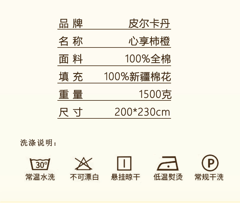 皮尔卡丹纯棉夏被心享柿橙PCAZ-26036