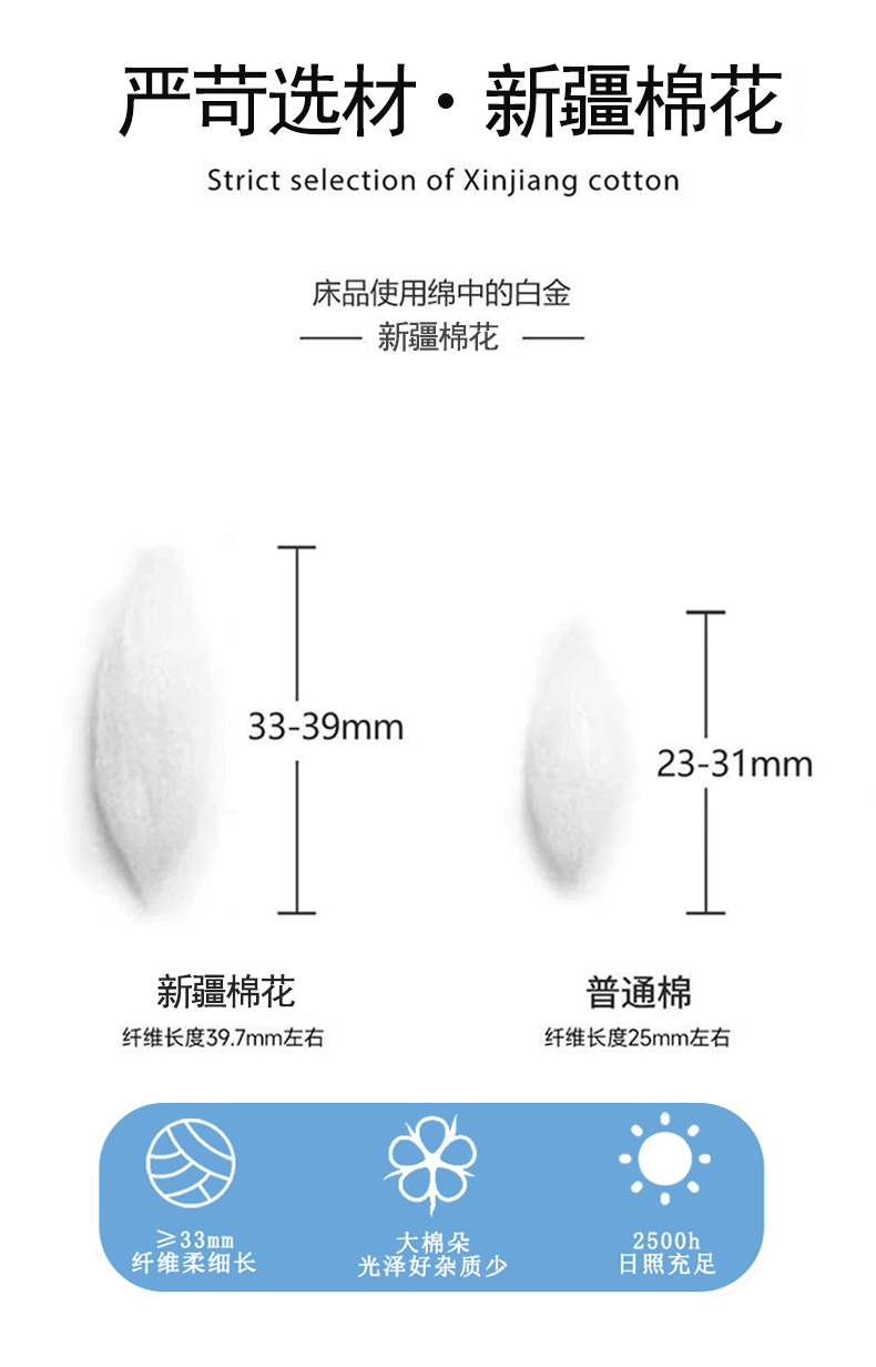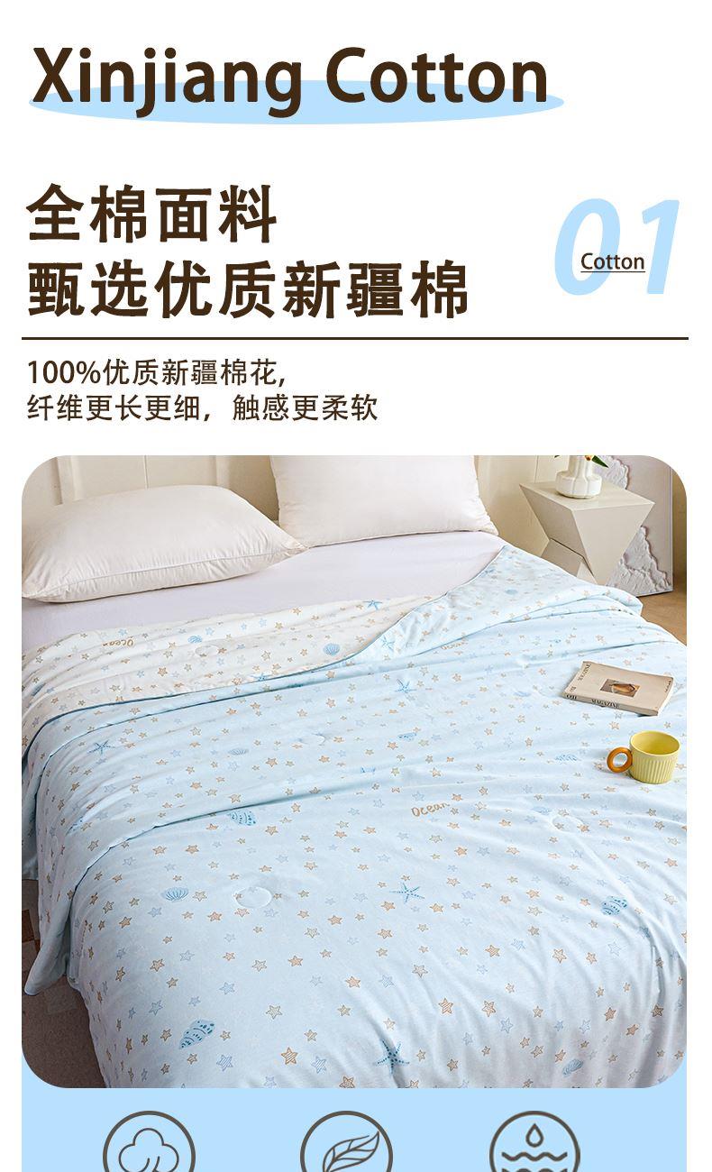 产品参数: 面料:10 0%纯棉 填充:10 0%棉花 重量:1500克 规格: 200*230cm 产品卖点: 采用10 0%纯棉面料,舒适透气,吸湿性强,填充10 0%棉花,给您健康陪伴