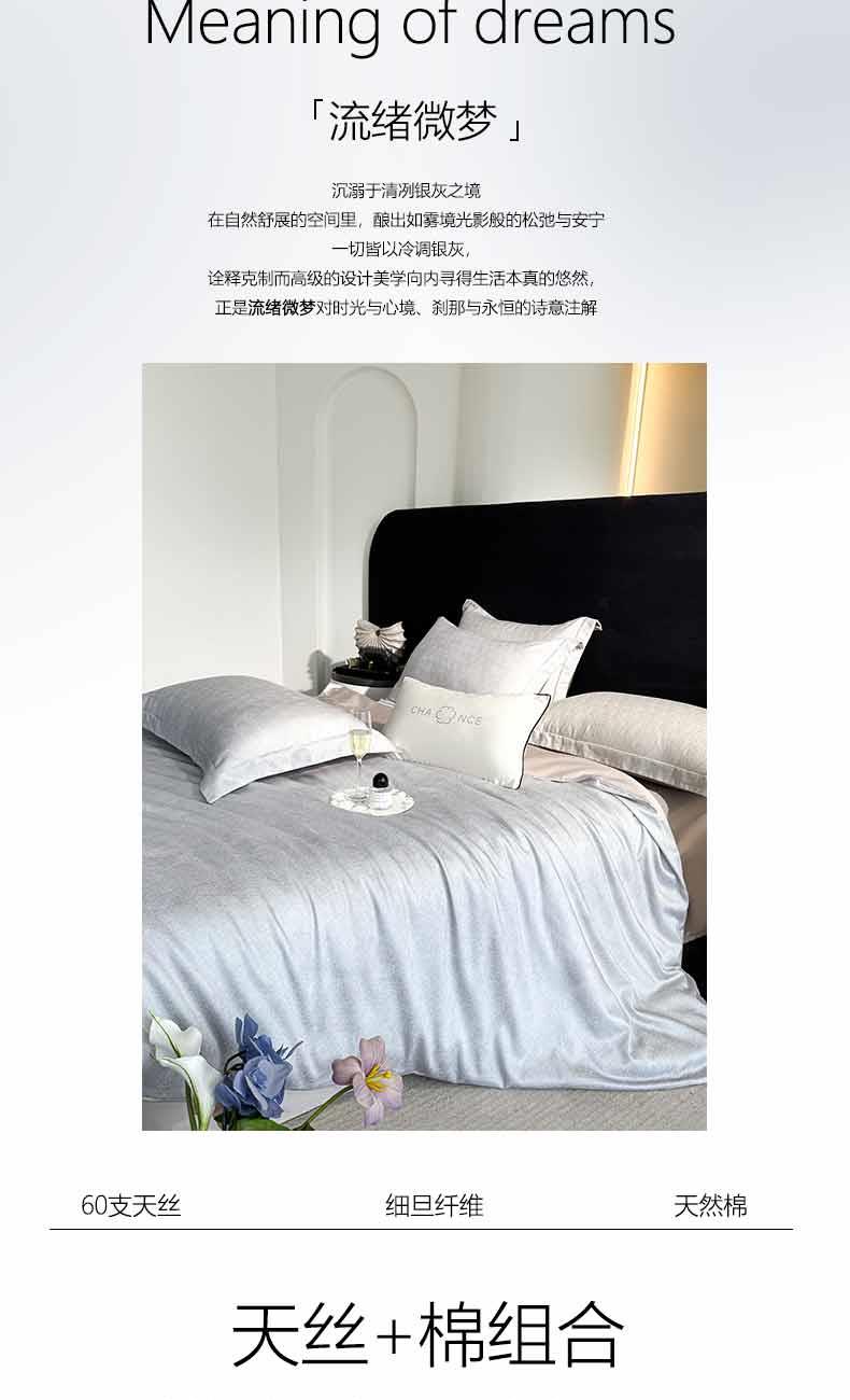 皮尔卡丹60支天丝四件套流绪微梦-银灰PCAZ-26039