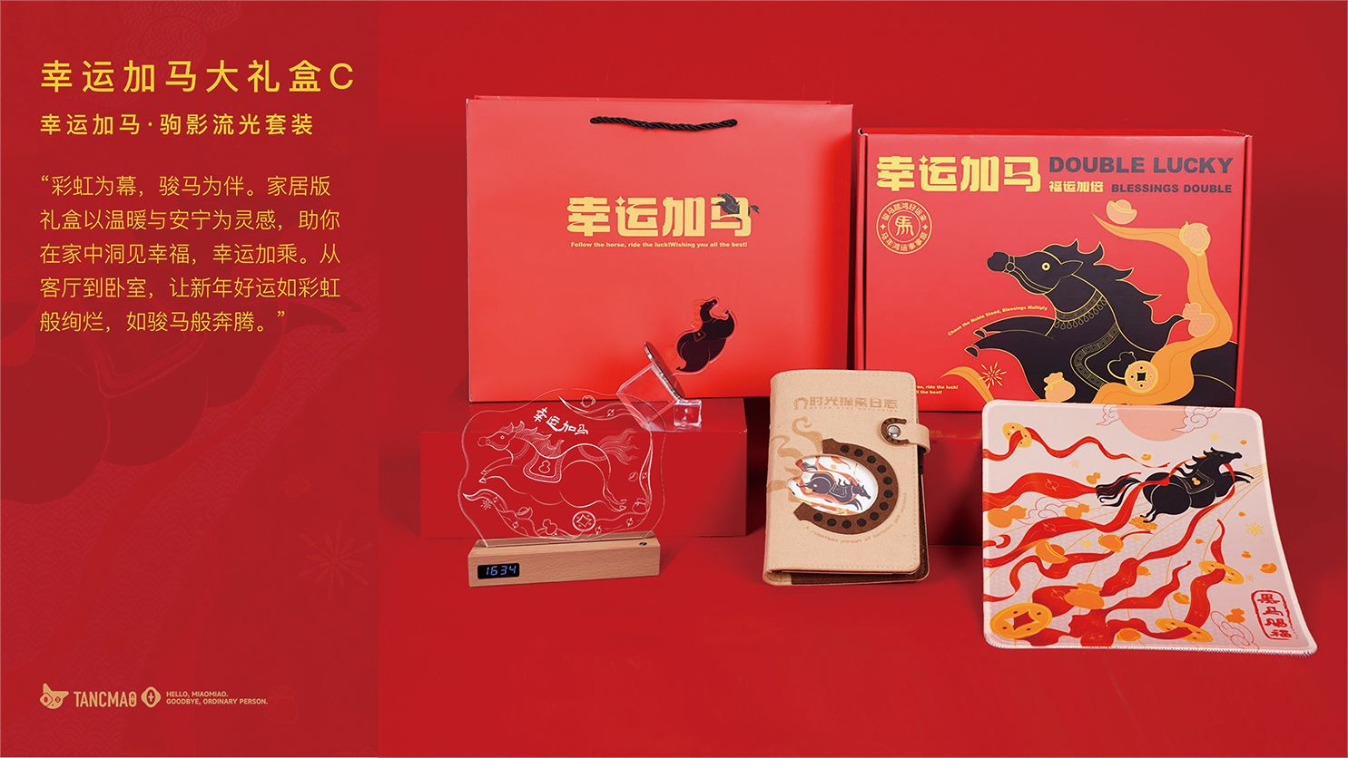 贪吃猫文创马年挂件鼠标垫笔记本冰箱贴小夜灯新年礼盒套装